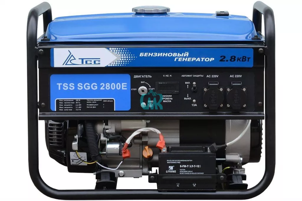 Бензогенератор с электронным запуском TSS SGG 2800E предназначен для выработки электроэнергии с основными характеристиками: напряжение - 220 вольт, частота 50 Гц и номинальной мощностью 2.8 кВт. Однофазный бензиновый генератор ТСС совершенно незаменим для множества ситуаций, где требуется недорогой, мобильный, неприхотливый и простой в эксплуатации источник независимого электроснабжения. Бензиновая электростанция с максимальной мощностью 3.1 кВт не только отлично справится с созданием резервного электропитания в случаях отключения электроэнергии, но и гарантирует стабильную работу в качестве главного источника питания. Российский бензогенератор может применяться на даче, в гараже, для уличной торговли или летнего кафе, а также, при выездах в автопутешествия с палатками или на рыбалку. Электрогенератор бензиновый работает на бензине АИ-92. Рекомендуемое к эксплуатации масло SAE 10W30. Особенности: -Интеллектуальный модуль с многофункциональным дисплеем предлагает эффективный способ контроля параметров работы (на дисплее отображаются часы работы бензогенератора, напряжение, частота тока) -Электронная система аварийной защиты (контролирует параметры работы станции и, при необходимости, выключит генератор, в том числе по перегрузке или по низкому уровню масла) -Топливный бак увеличенного объема обеспечивает автономную работу агрегата в течение 10 часов, с учетом обеспечения режима охлаждения -Тепловой автоматический выключатель для защиты от перегрузок и короткого замыкания