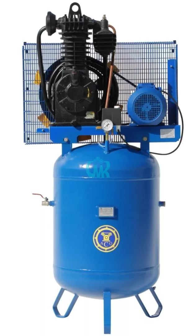 Поршневой вертикальный компрессор КВ15/7 оснащен ременным приводом и работает на двигателе мощностью 5,5 кВт от сети напряжением 380 В. Максимальное рабочее давление 7 атм, производительность 1000 л/мин. Производительность на выходе составляет 770 л/мин. Размеры компрессорной установки 95 х 75 х 180 см., вес 270 кг.