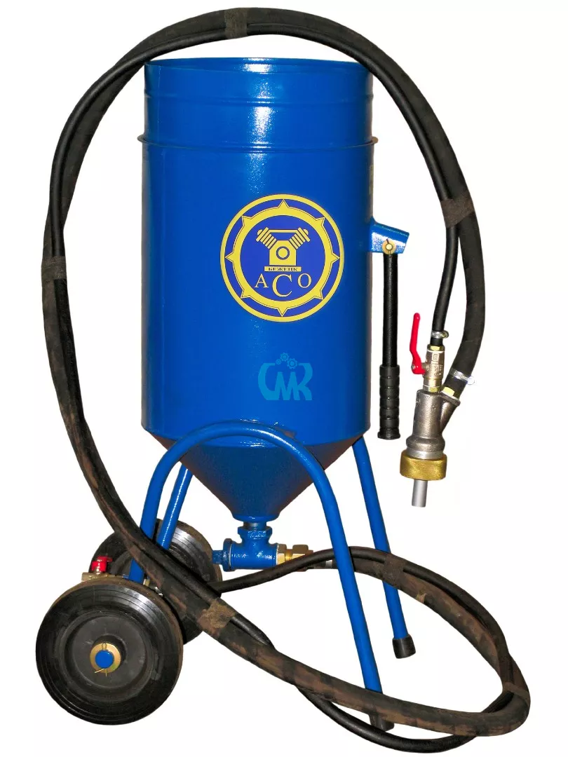 Аппарат струйной очистки АСО-40Э представляет собой устройство, состоящее из ресивера, образующего рабочую камеру аппарата, загрузочного бункера с сеткой, дозатора абразива, напорного рукава и блока управления.