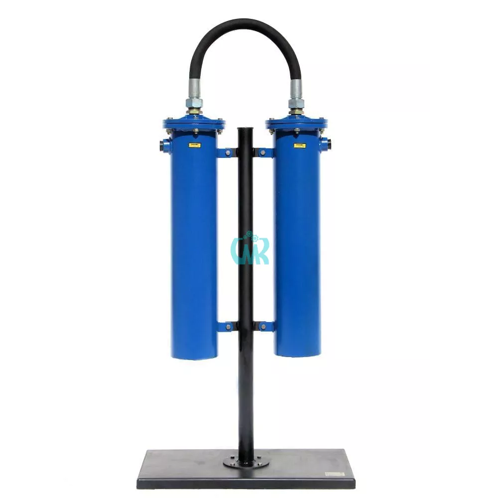 Фильтрационный модуль – двухступенчатый; состоит из двух последовательно объединенных блоков очистки (фильтров). Корпус блока очистки изготовлен из стальной трубы. На корпусе имеется патрубок (с внутренней резьбой см. таблица 2 для конкретной модели) для подвода-отвода магистрали сжатого воздуха. Торцы корпуса закрываются крышками. В нижней крышке для слива конденсата имеется резьбовая пробка (G3/8").