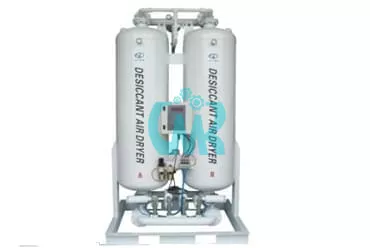 Адсорбционный осушитель горячей регенерации используется для осушения сжатого воздуха до точки образования росы -40°С (под заказ до -70С). Адсорбционный осушитель состоит из двух регенерационных колонн со встроенными внутрь тэнами для нагрева адсорбента (селикагель). Такая система подогрева адсорбента на адсорбционных осушителях дает наибольший КПД по количеству затраченной тепловой энергии на регенерацию. На рекуперацию и охлаждение сорбента расходуется около 2.5% cсжатого воздуха от номинальной производительности установки.