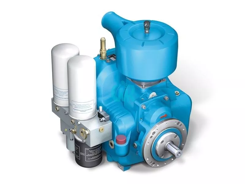 Компрессор одноступенчатый двухвинтовой маслозаполненный объемный низкого давления со встроенными системами сепарации и фильтрации. Назначение: Сжатие атмосферного воздуха в составе масловоздушной смеси, первичная сепарация и фильтрация масла, предохранение от перегрева, поддержание минимального давления прокачивания масла.